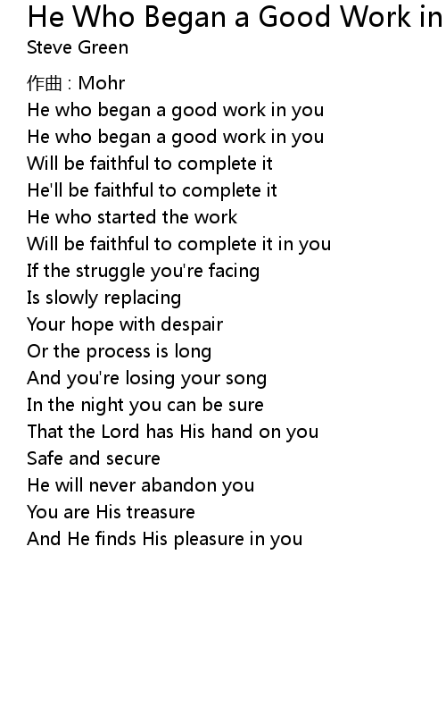 | Song | He Who Began a Good Work in You |