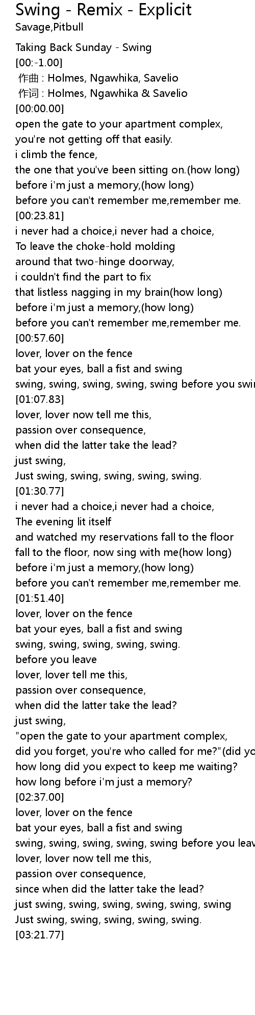 | [03:03.71] | just swing, swing, swing, swing, swing, swing |