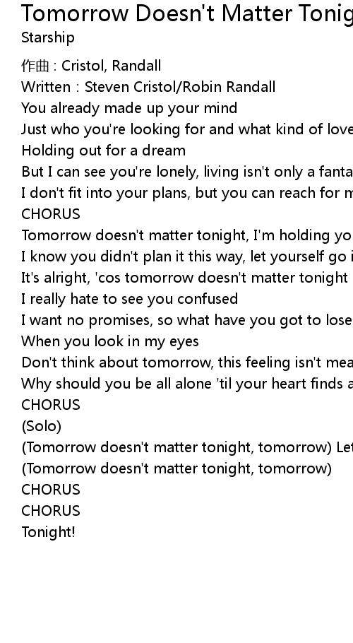 | Tomorrow doesn' t matter tonight, tomorrow | |