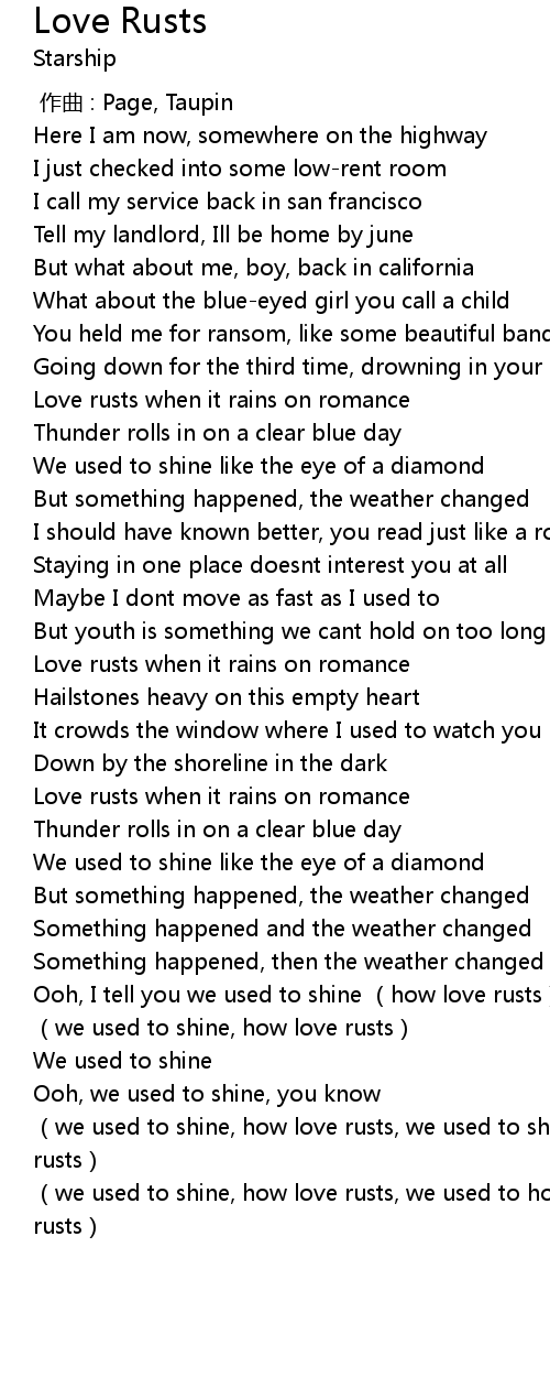 | [04:18.20] | (we used to shine, how love rusts, we used to shine, how love rusts) |