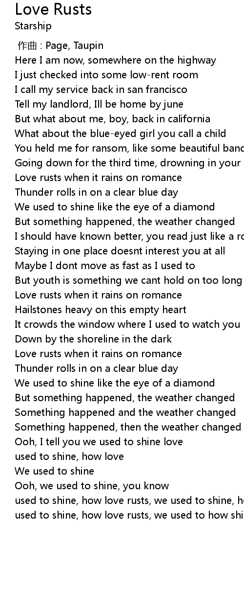| [04:17.57] | used to shine, how love rusts, we used to shine, how love |