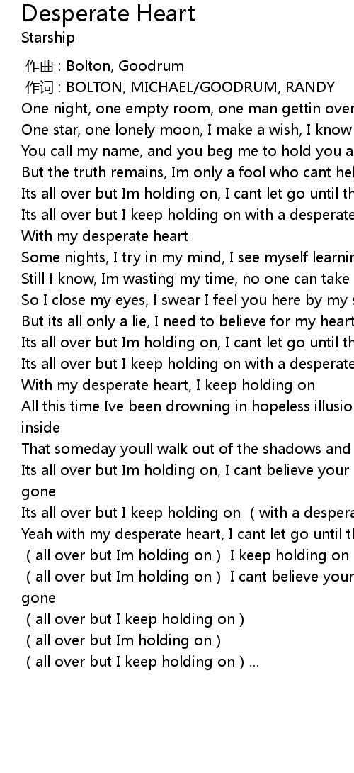 | [01:11.46] | Its all over but I keep holding on with a desperate heart |