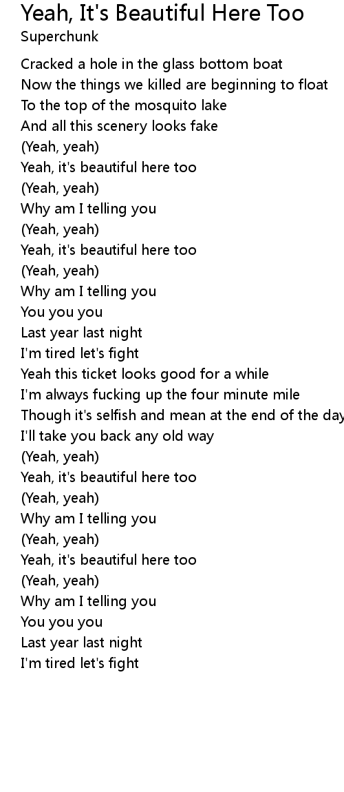 Yeah, it's beautiful here too |