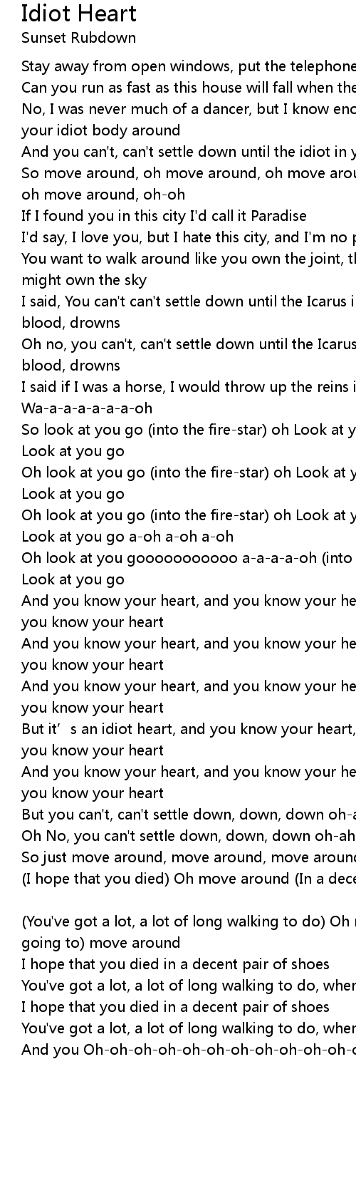 | But it' s an idiot heart, and you know your heart, and you know your heart, and you know your heart | |