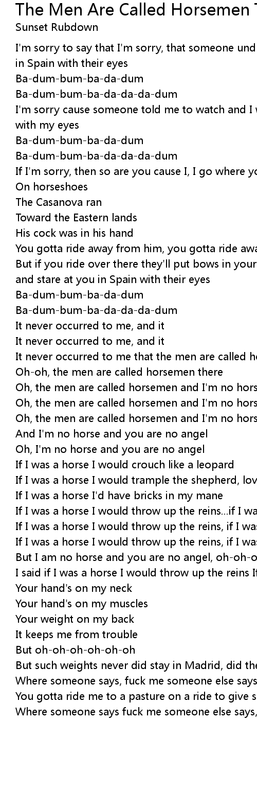If I was a horse I would throw up the reins, if I was you, oh-oh-oh-oh-oh |