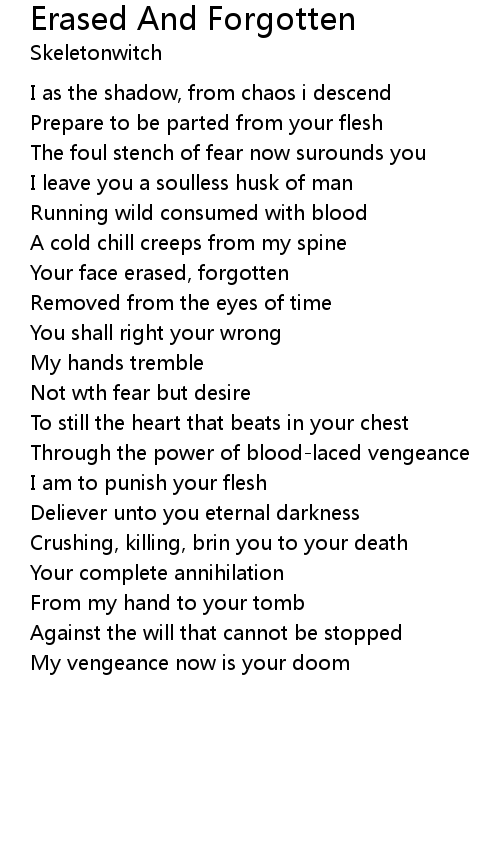 Your face erased, forgotten |