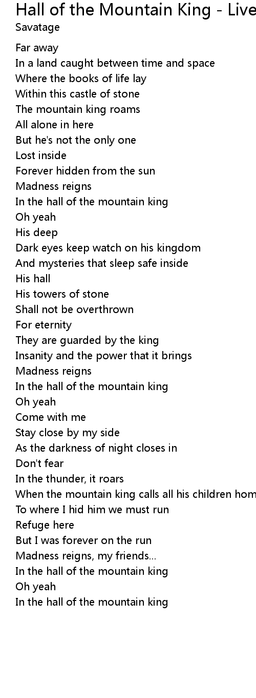 Hall of the Mountain King - Live at L'Amour, Brooklyn, 1990 Lyrics