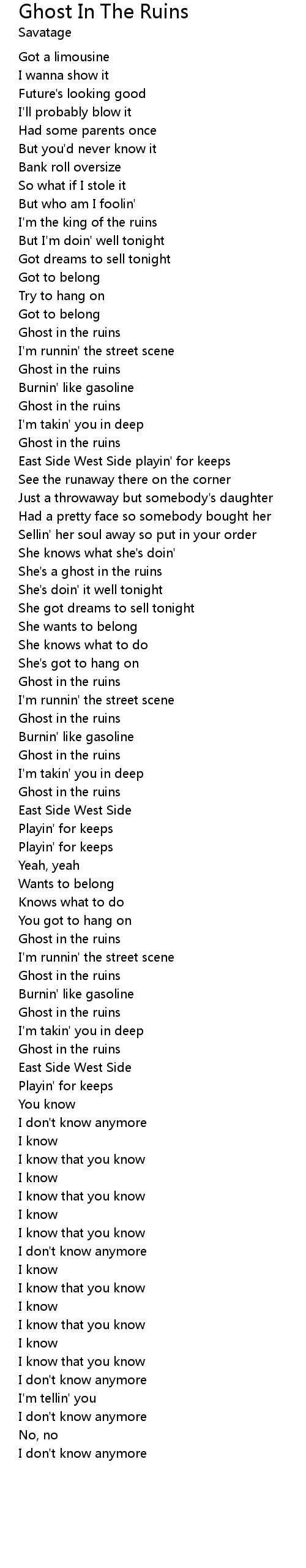 She's a ghost in the ruins |