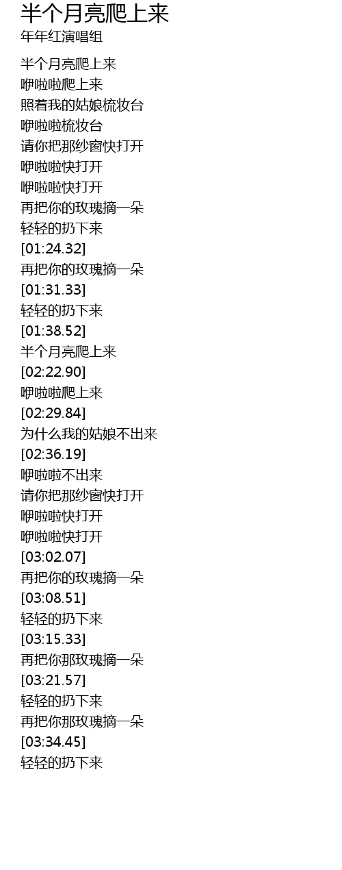 | [00:28.85] | bàn gè yuè liàng pá shàng lái |