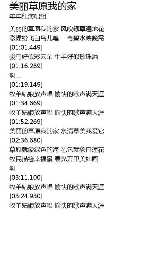 | [02:24.930] | 美丽的草原我的家 水清草美我爱它 |