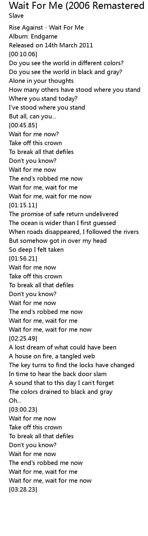 Rise Against - Wait For Me |