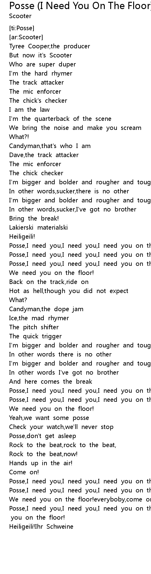 Posse,I need you,I need you,I need you on the floor,We need you on the floor! |