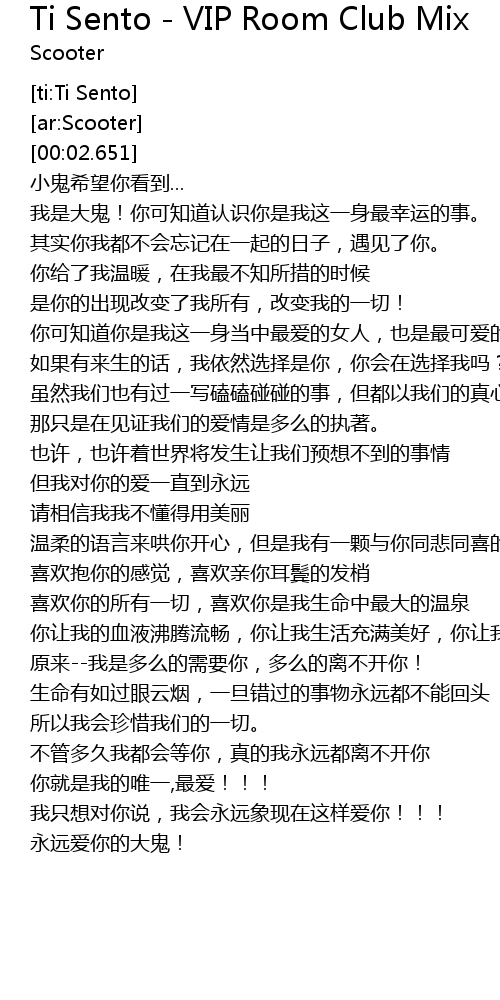 | [03:41.447] | 我只想对你说,我会永远象现在这样爱你!!! |