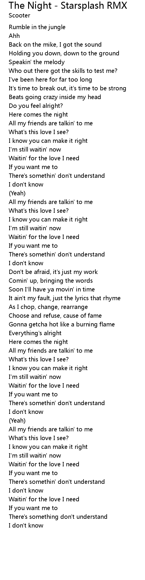 The Night - Starsplash RMX Lyrics