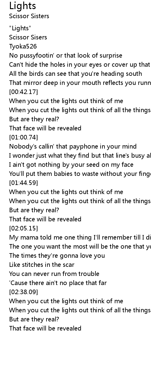 When you cut the lights out think of me |