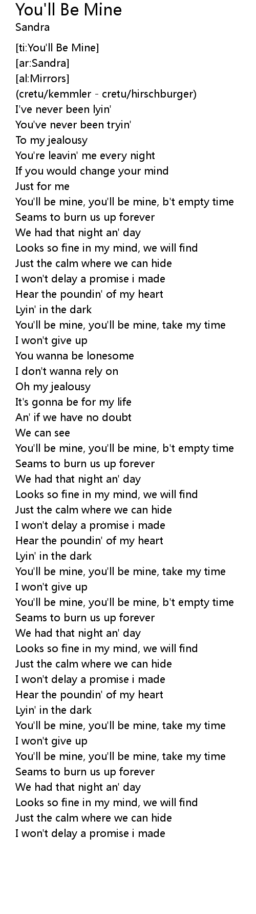 | [02:18.41] | You'll be mine, you'll be mine, b't empty time |