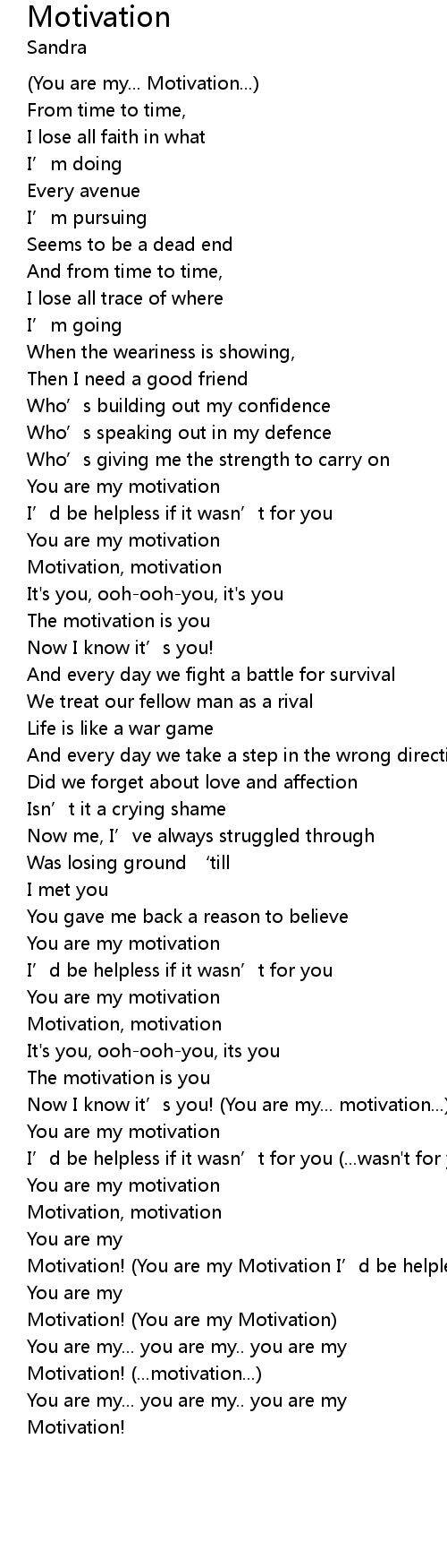 | Motivation! You are my Motivation I' d be helpless if it wasn' t for you | |