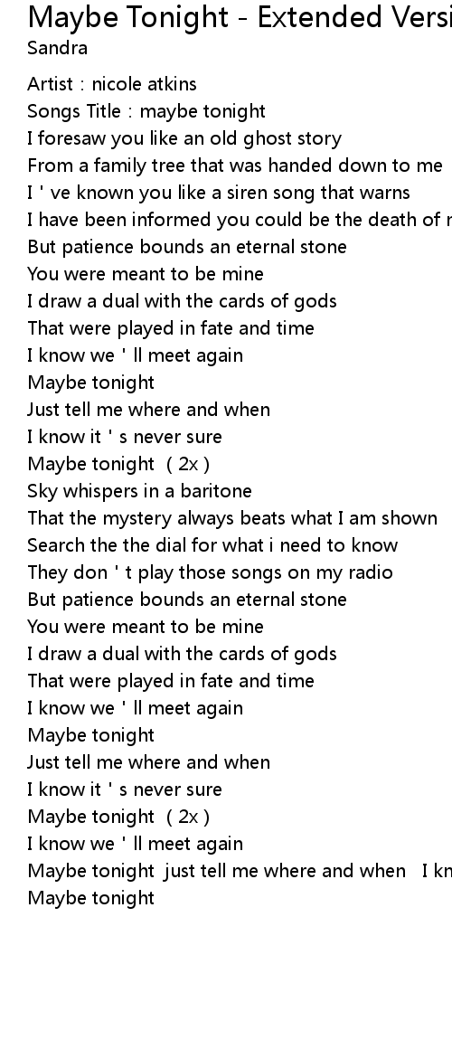 | [02:25.81] | Maybe tonight (2x) |