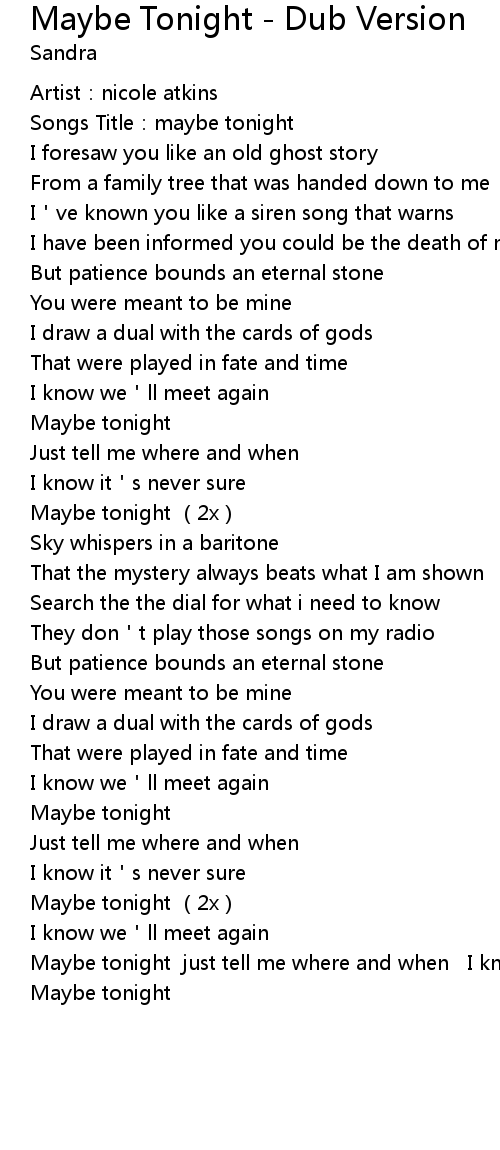 | [01:16.39] | Maybe tonight (2x) |