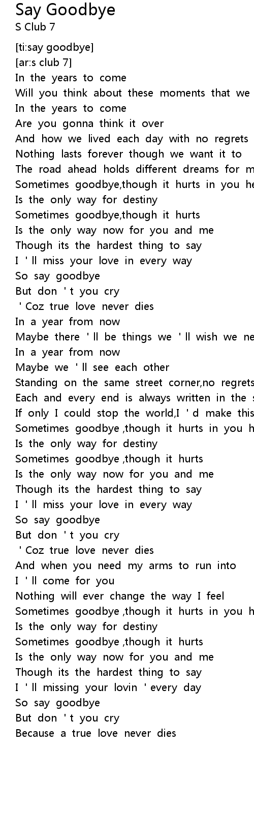 | [03:05.671] | Sometimes goodbye , though it hurts in you heart |