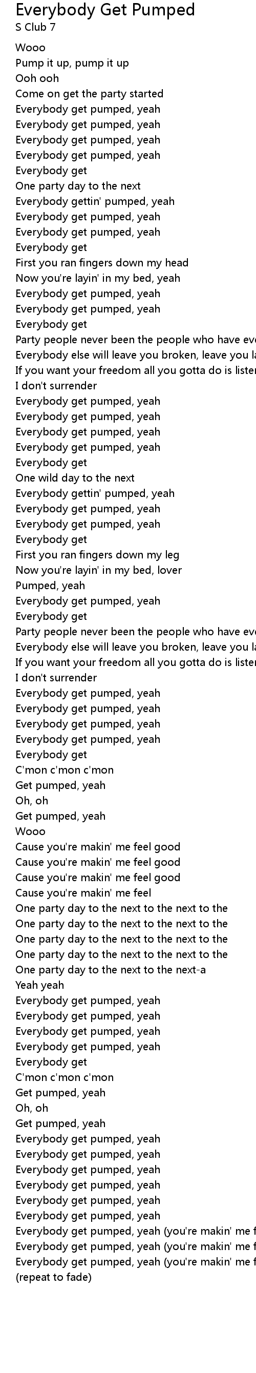 Song Everybody Get Pumped