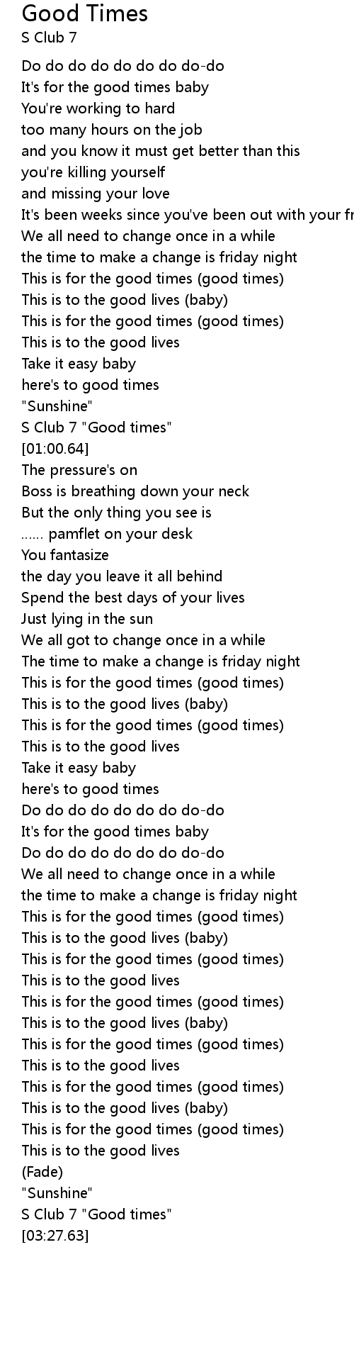 | [03:26.40] | S Club 7 " Good times" |