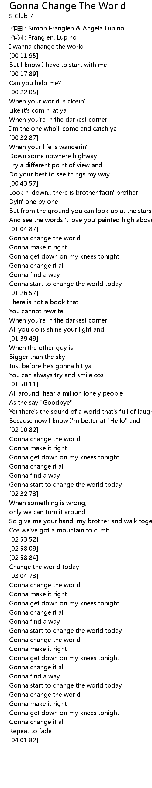 | [03:42.46] | Gonna start to change the world today |