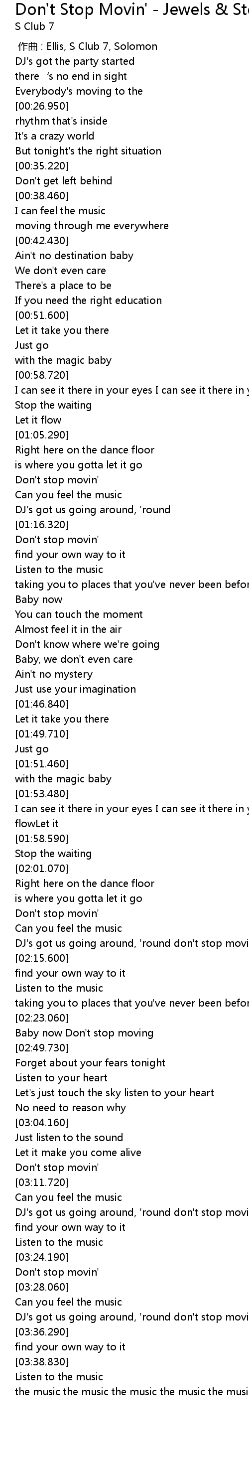| [03:30.740] | DJ' s got us going around, ' round don' t stop moving |