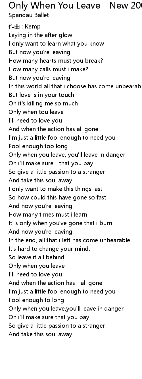 | Song | Only When You Leave - New 2009 Studio Recording |