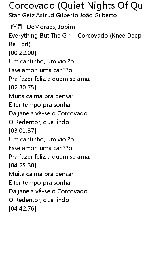 | [00:02.00] | Everything But The Girl Corcovado Knee Deep RemixBen Watt Vocal ReEdit |