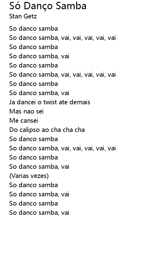 | So danco samba, vai, vai, vai, vai, vai | |