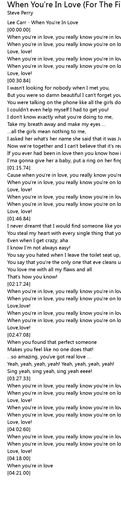 | [00:16.58] | When you' re in love, you really know you' re in love! |