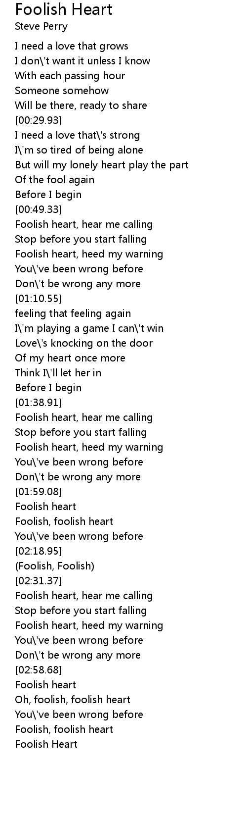 Oh, foolish, foolish heart |