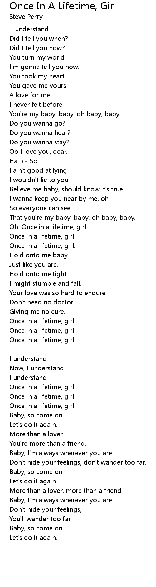 Once in a lifetime, girl |