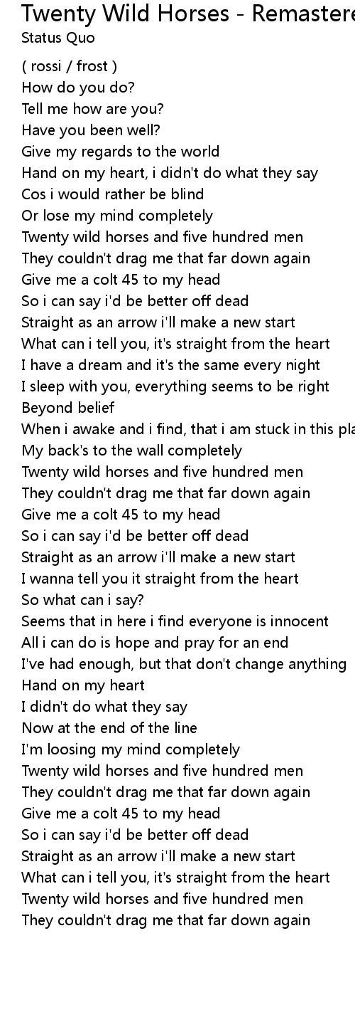 Twenty Wild Horses - Remastered Lyrics