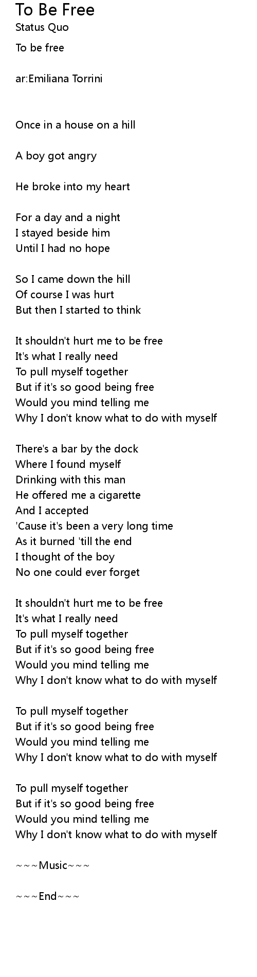 It shouldn't hurt me to be free |