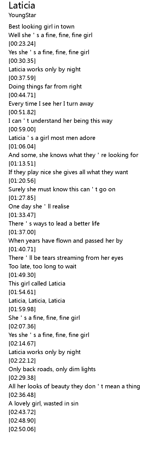 | [01:56.05] | Laticia, Laticia, Laticia |