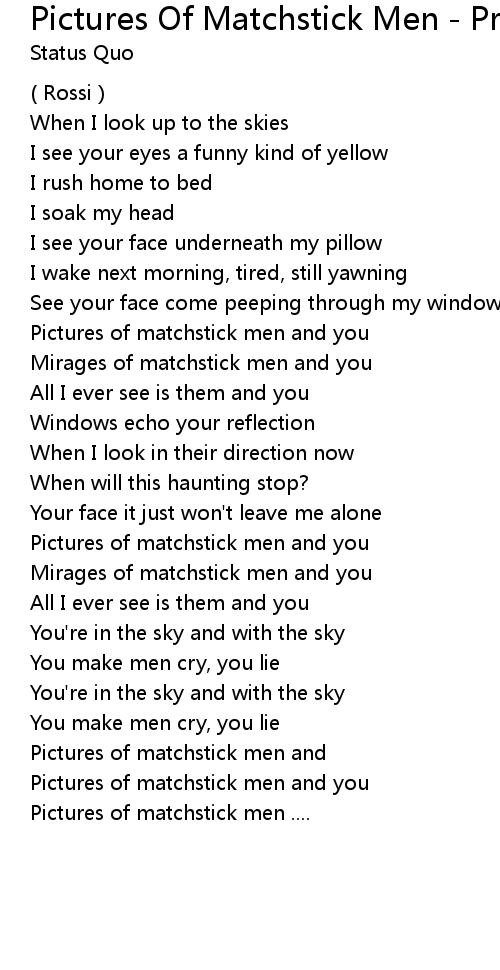 Pictures Of Matchstick Men - Previously Unreleased Alternate Version Mix Lyrics