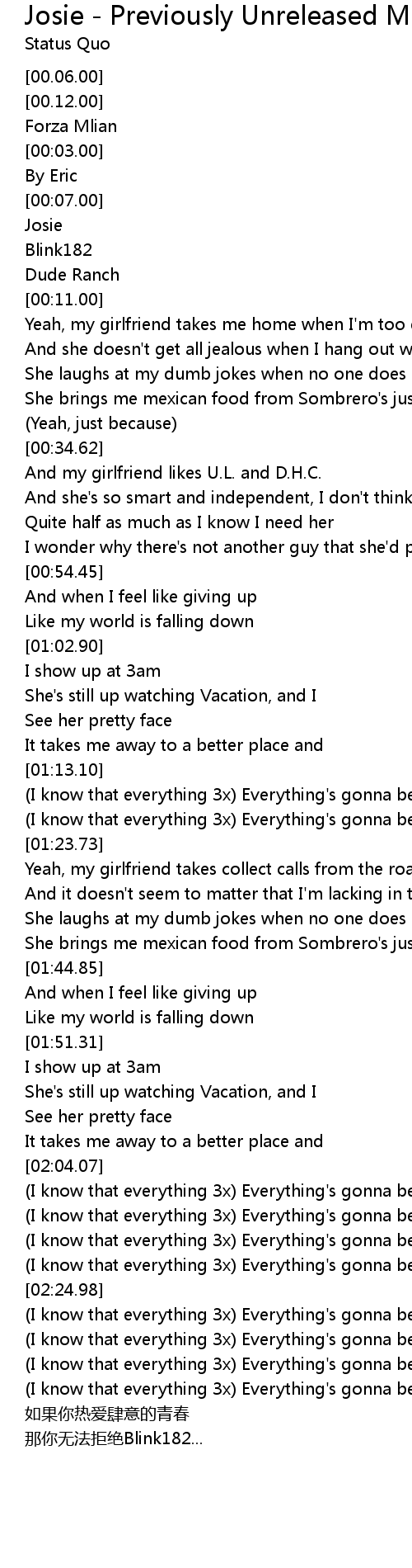 | [01:13.40] | (I know that everything 3x) Everything's gonna be fine |