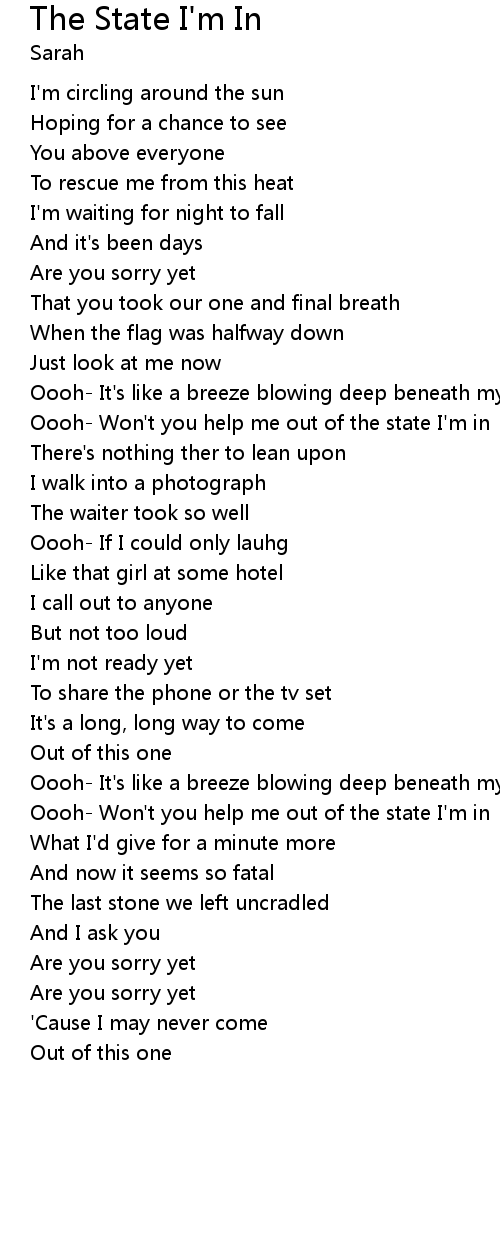 | Oooh- Won't you help me out of the state I'm in | |