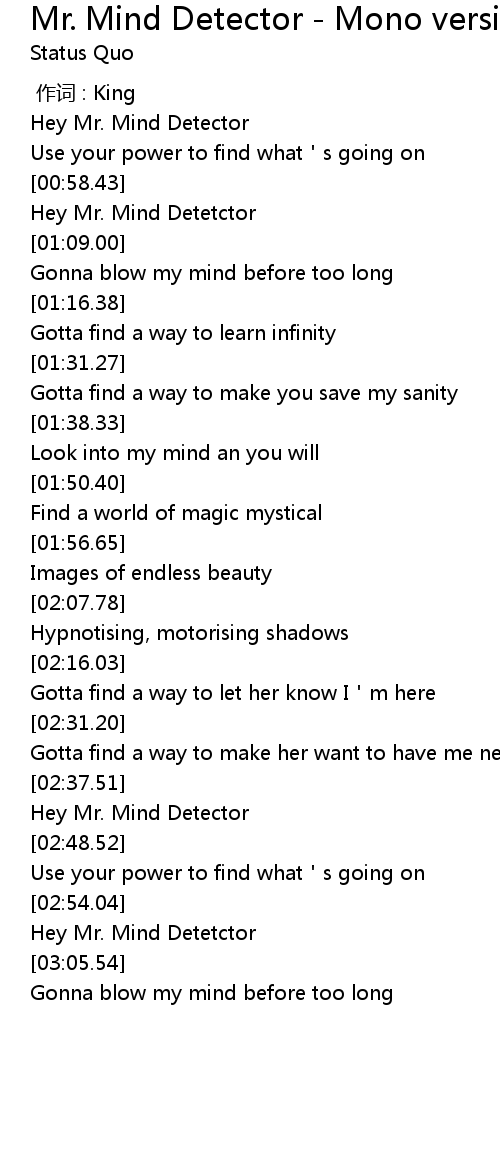 | [03:00.73] | Hey Mr. Mind Detetctor |