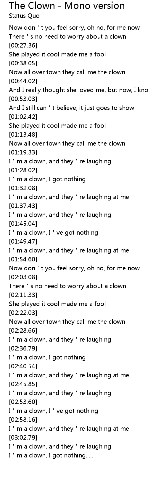 | [02:41.48] | I m a clown, and they re laughing at me |