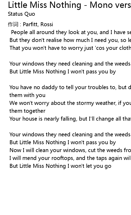 | But Little Miss Nothing I won't pass you by | |