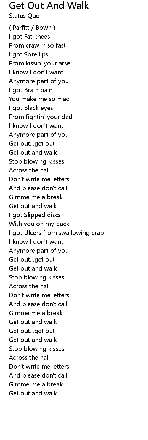 | Song | Get Out And Walk |