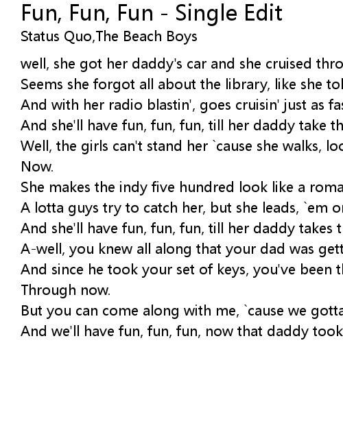 And she'll have fun, fun, fun, till her daddy takes the t-bird away. |