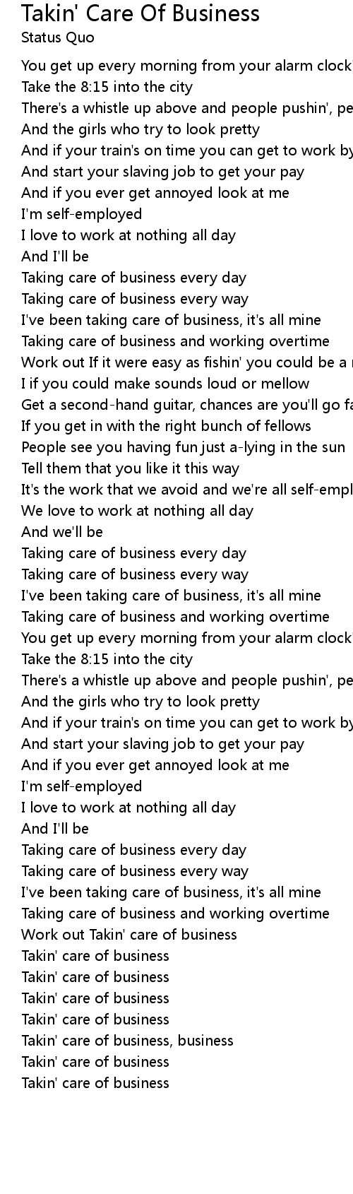Takin' care of business, business |