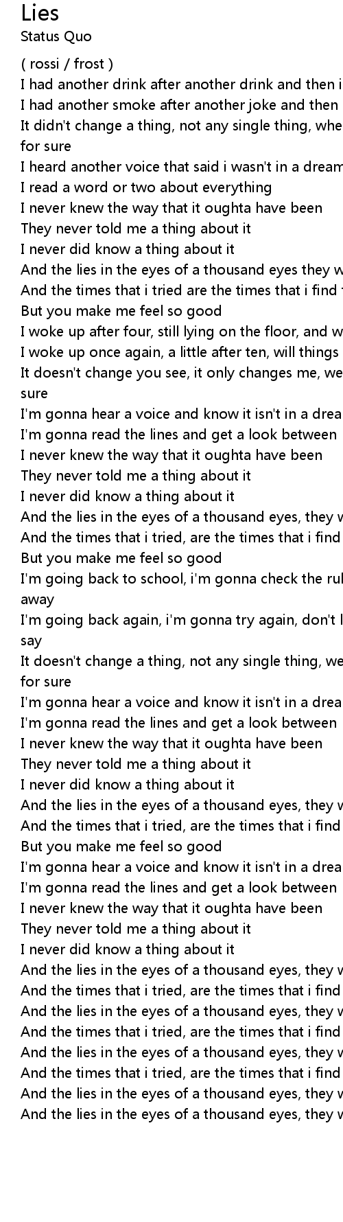 And the lies in the eyes of a thousand eyes, they won't go away |