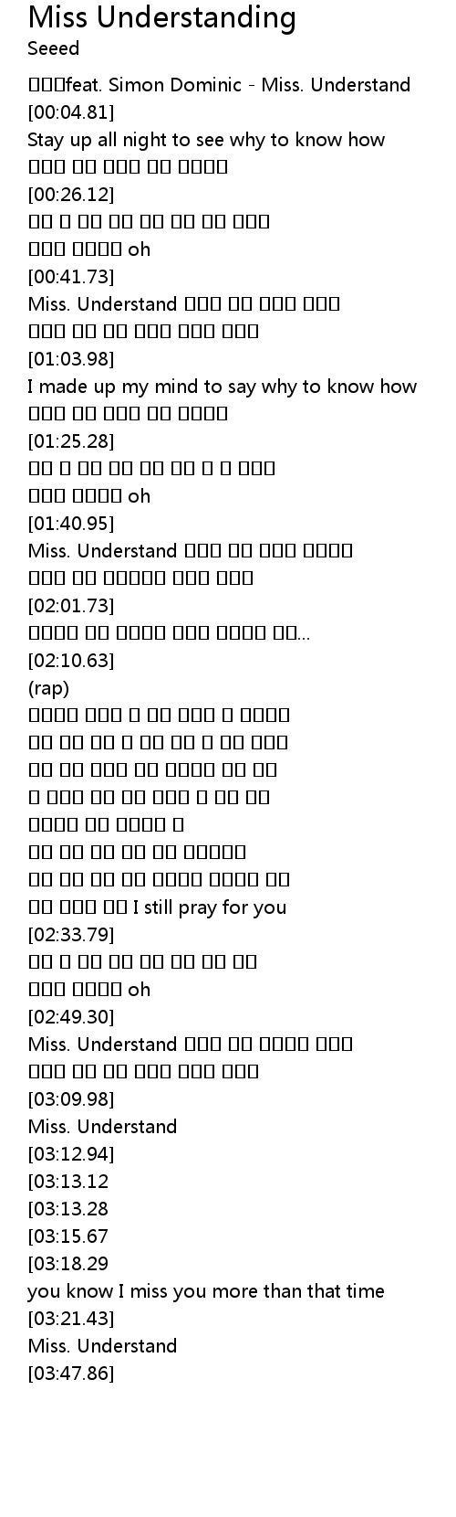 | [02:49.64] | Miss. Understand |