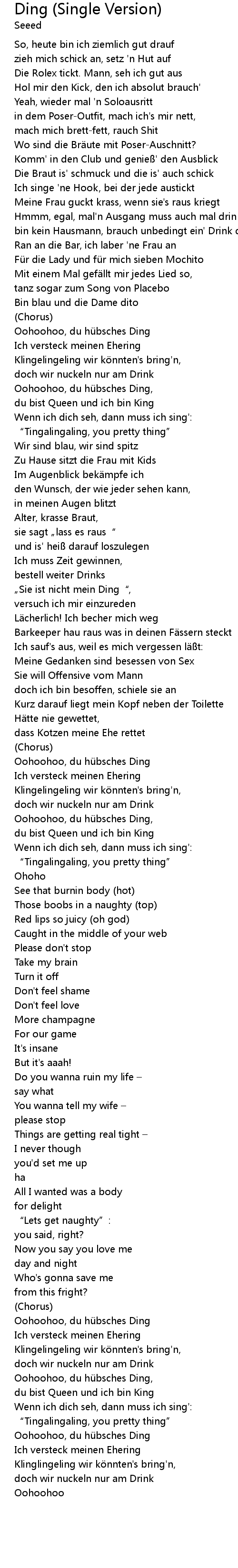 | bin kein Hausmann, brauch unbedingt ein' Drink der taugt, | |