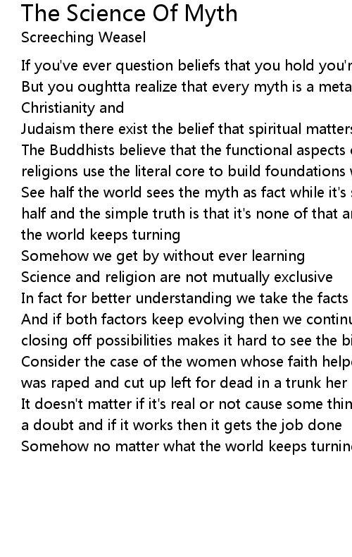 But you oughtta realize that every myth is a metaphor in the case of |